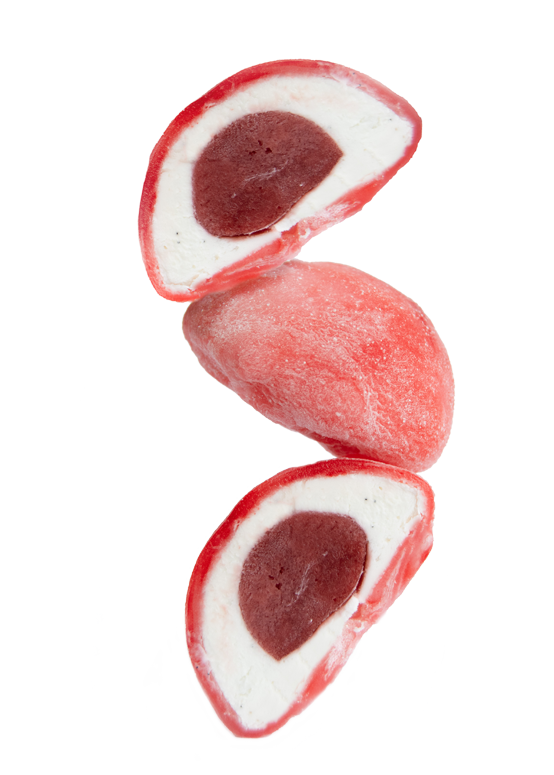 Тесто: рисовая мука, кукурузный крахмал, сахарная пудра, вода, пищевой краситель, растительное масло. Начинка: тримолин, кремчиз, кокосовые сливки, сливки 33%. Центр: Белый шоколад, кукурузное масло, вафельная крошка, кокосовая стружка.